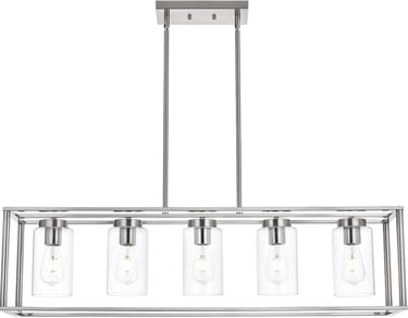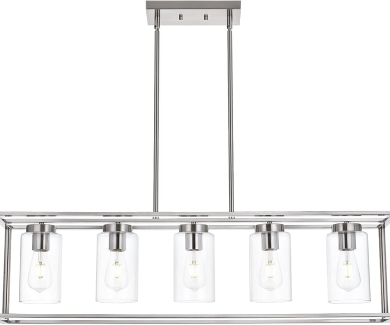 Crafted with a sleek brushed nickel finish and paired with clear glass shades, this fixture delivers bright, even illumination—perfect for family dinners, kitchen prep, or entertaining guests. The linear design makes it ideal for long dining tables and kitchen islands, creating a balanced and stylish focal point in your space.