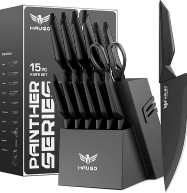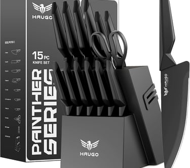 Knife Set - Haugo 15 PCS Kitchen Knife Set with Built in Sharpener