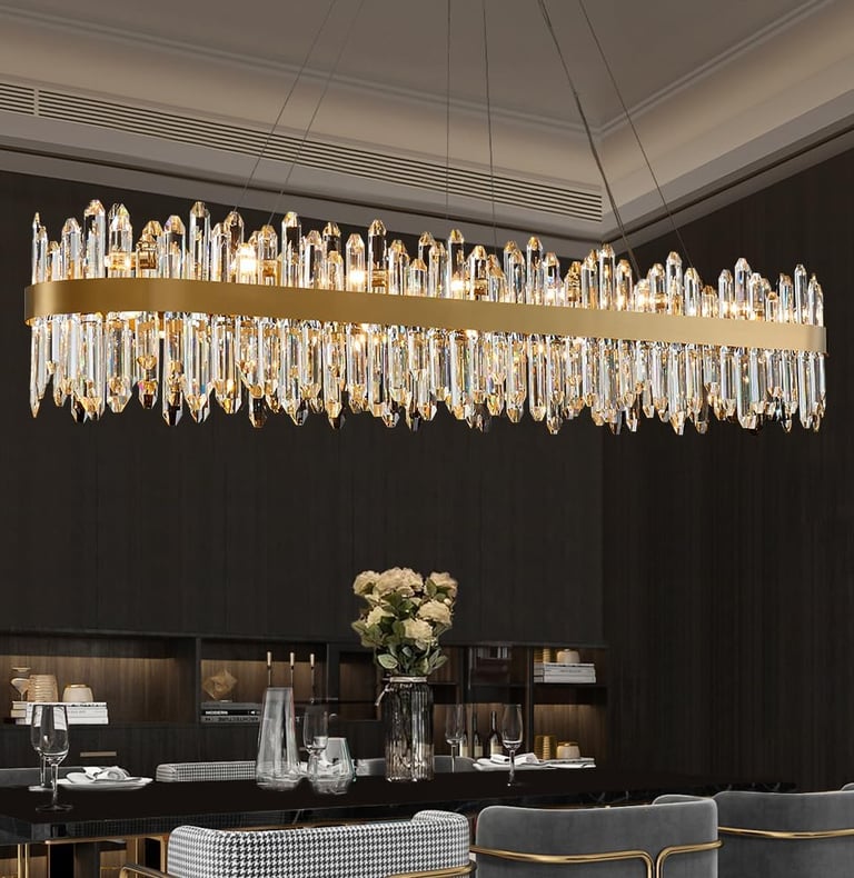 Rectangular Chandelier for Dining Room Rectangle Dining Room Light Fixture Chrome Crystal Chandeliers Lighting Modern Hanging for Kitchen Island Over Table Linear Large