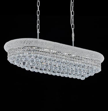 Rectangular Crystal Chandeliers for Dining Room,10 Lights Adjustable Height Oval Crystal Ceiling Light Fixture for Kitchen Island, Chrome Finish, L36''