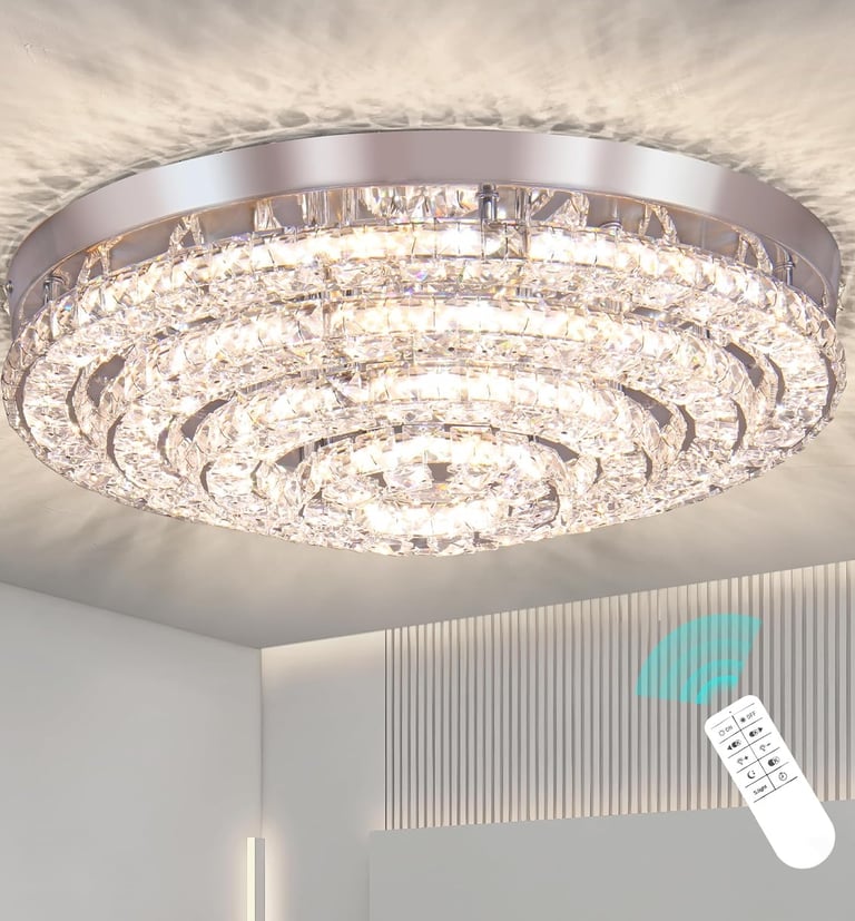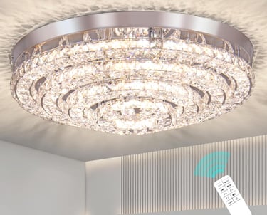 LED Ceiling Light Material: K9 Crystal and Stainless steels.450mm (17.7" ceiling base),height 140mm(5.5");