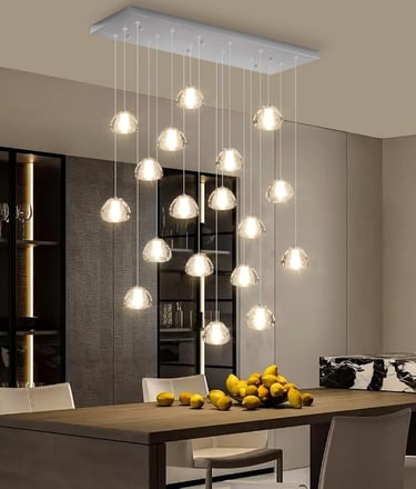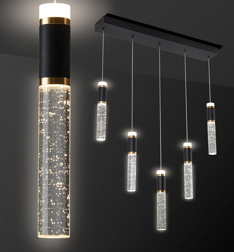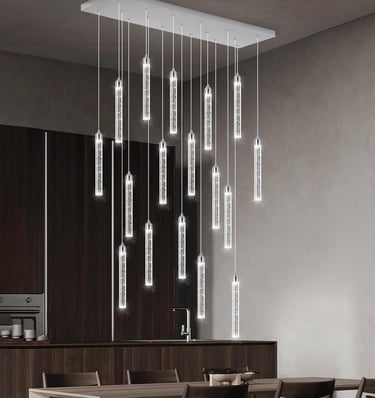 Upgrade Your Home's Ambience: The brushed nickel finish and bubble crystal cylinder of our pendant lights kitchen island 36-light create a stylish and elegant atmosphere that enhances any room. Ideal for use in your kitchen, dining room, bedroom, interior hallway, bar, or coffee shop, this modern light fixture is perfect for single or group use.