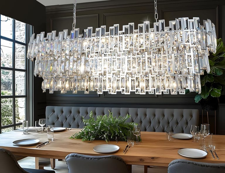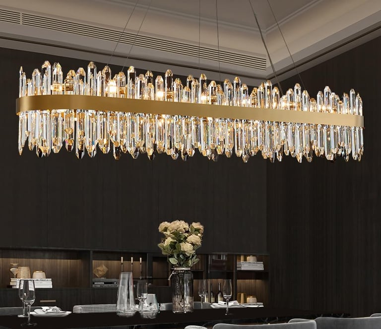 Rectangular Crystal Chandelier】This LED light, made of high-quality stainless steel and K9 crystal, brings beautiful lighting and a warm atmosphere to your room