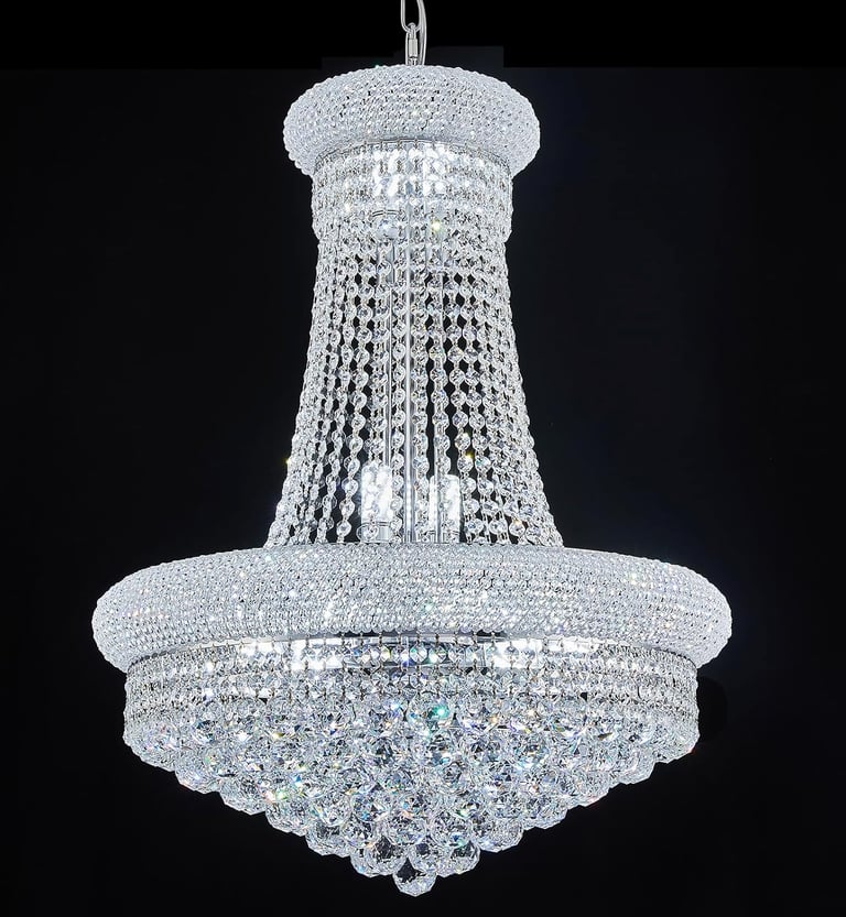 14 - Light Unique Empire Crystal Chandelier with Adjustable Chain for High Ceiling Foyer Entryway Living Room Dining Room Bedroom Chrome Finish