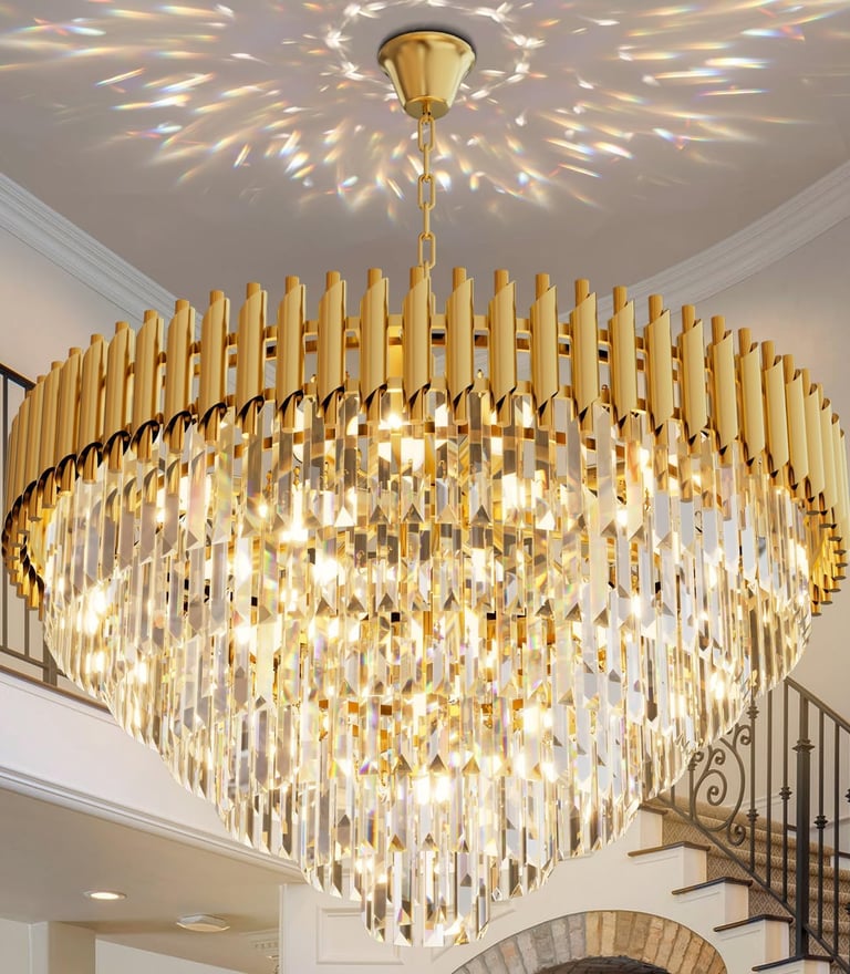Elevate Your Home With This 32-Inch Gold Crystal Chandelier — A Statement of Modern Luxury